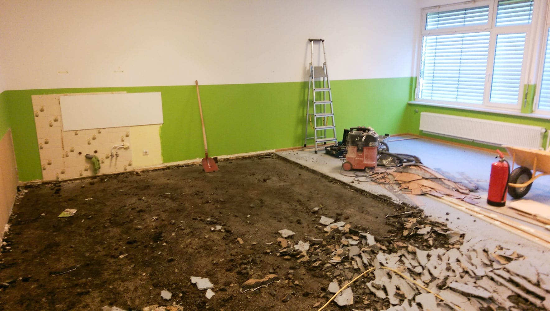 Nicht nur im Geschosswohnungsbau, sondern auch im Einfamilienhaus ist Estrich während des gesamten Jahres starken Belastungen ausgesetzt. Eine Erneuerung ist auch hier fällig, wenn sich Schäden zeigen. Oft sind die Fußböden nach vielen Jahren nicht mehr „gerade“, sondern neigen sich in eine bestimmte Richtung. Welche Arbeiten auszuführen sind, zeigt uns eine Besichtigung des Bodens vor Ort. Anhand der dort gesammelten Informationen über die Beschädigungen planen wir die Arbeiten und erstellen vorab einen Kostenvoranschlag.