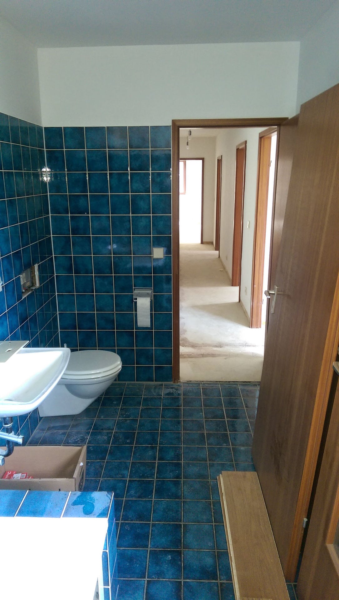 Sie sehen es selbst, das Bad hat einfach eine Modernisierung gebraucht. Der Kunde wollte die Badewanne durch eine Dusche ersetzt haben und die Fliesen erneuert werden. Hierbei konnten wir Ihn vorab gut beraten. Also musste erst mal alles alte raus um für Neues Platz zu schaffen. Das Ergebnis kann sich doch sehen lassen.