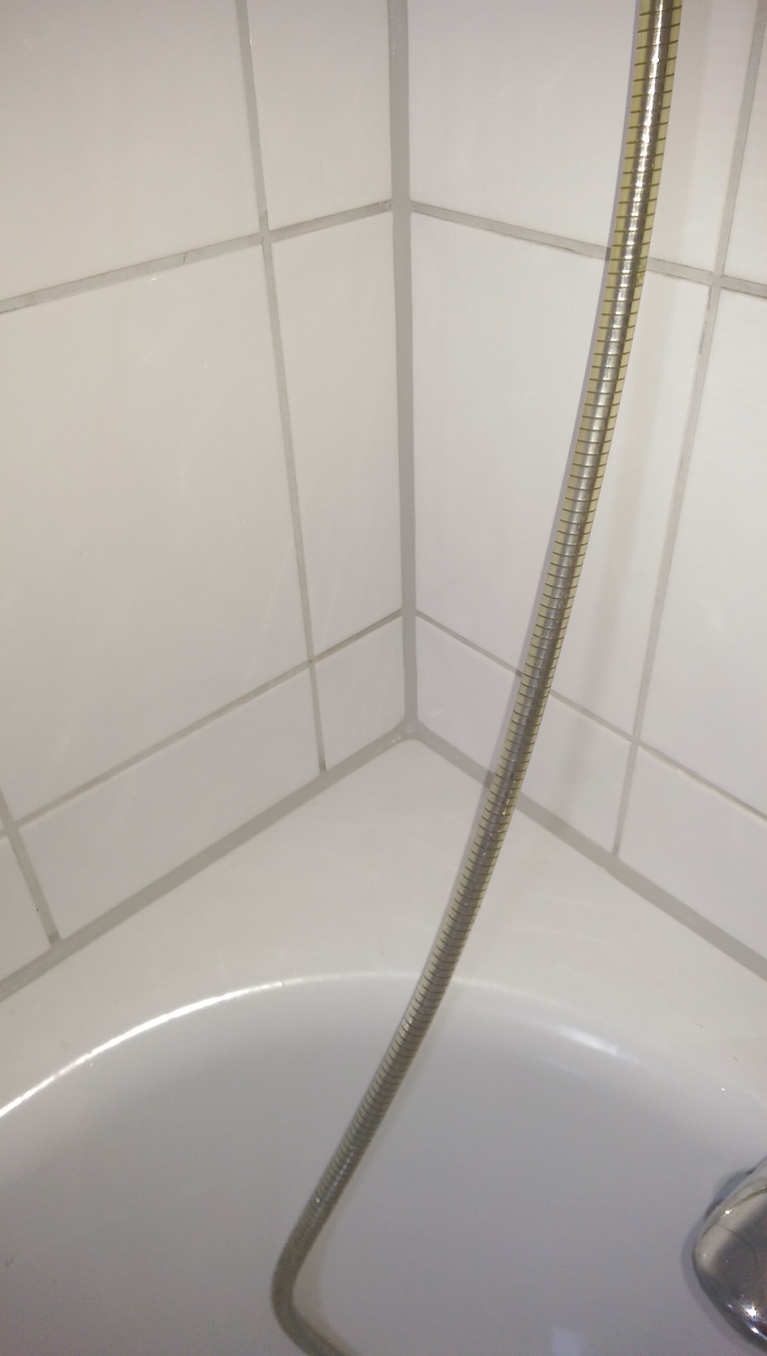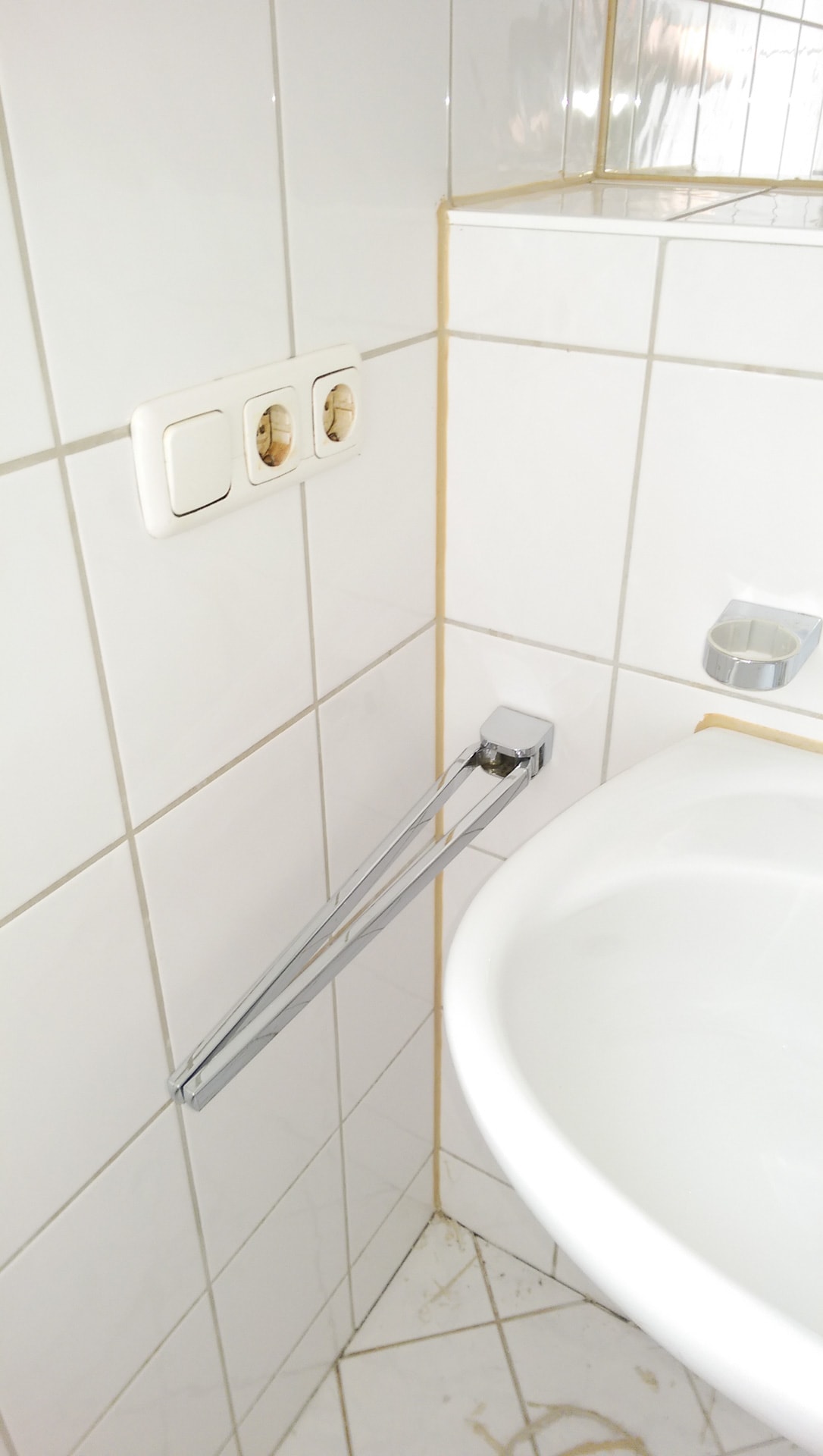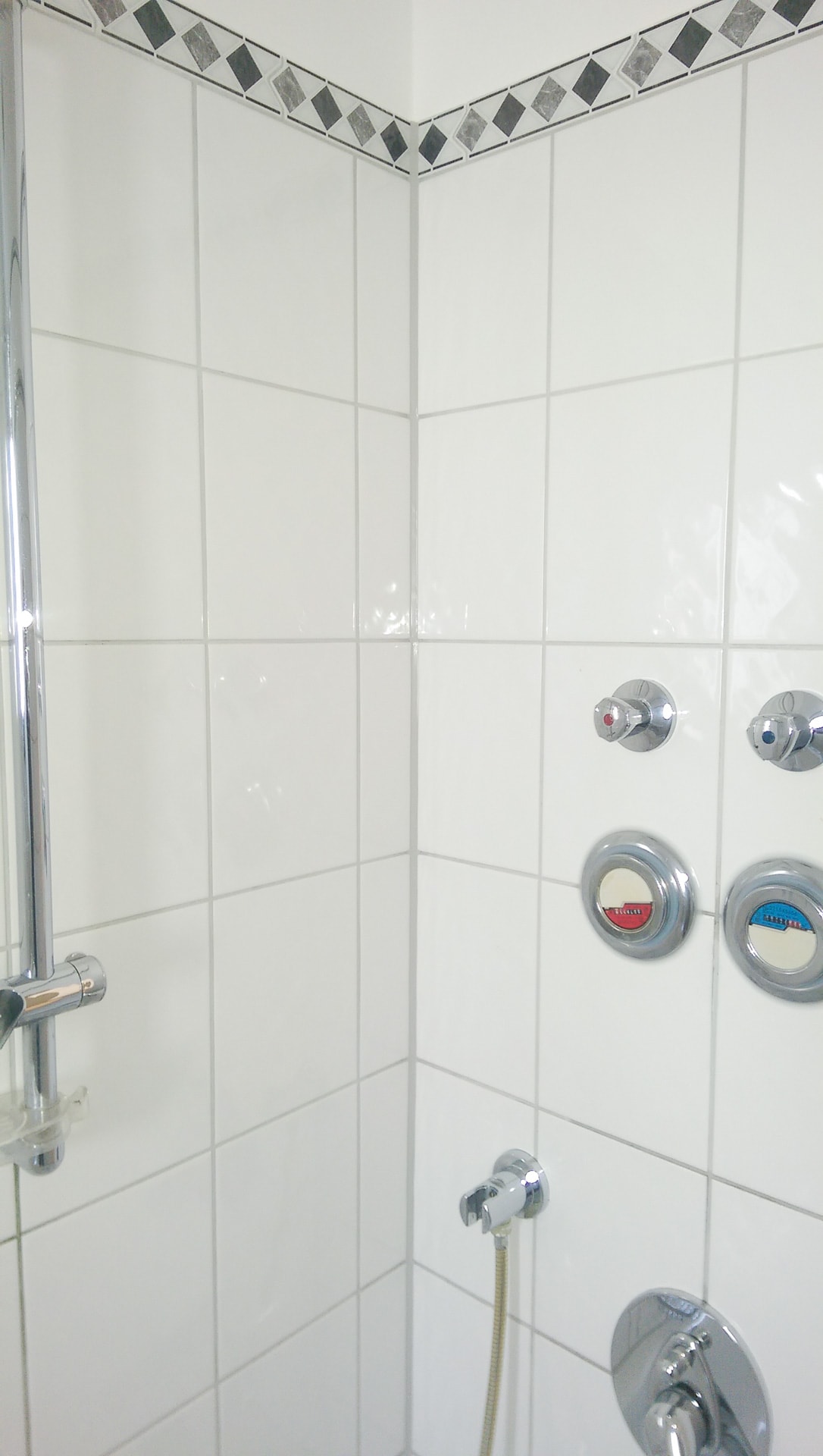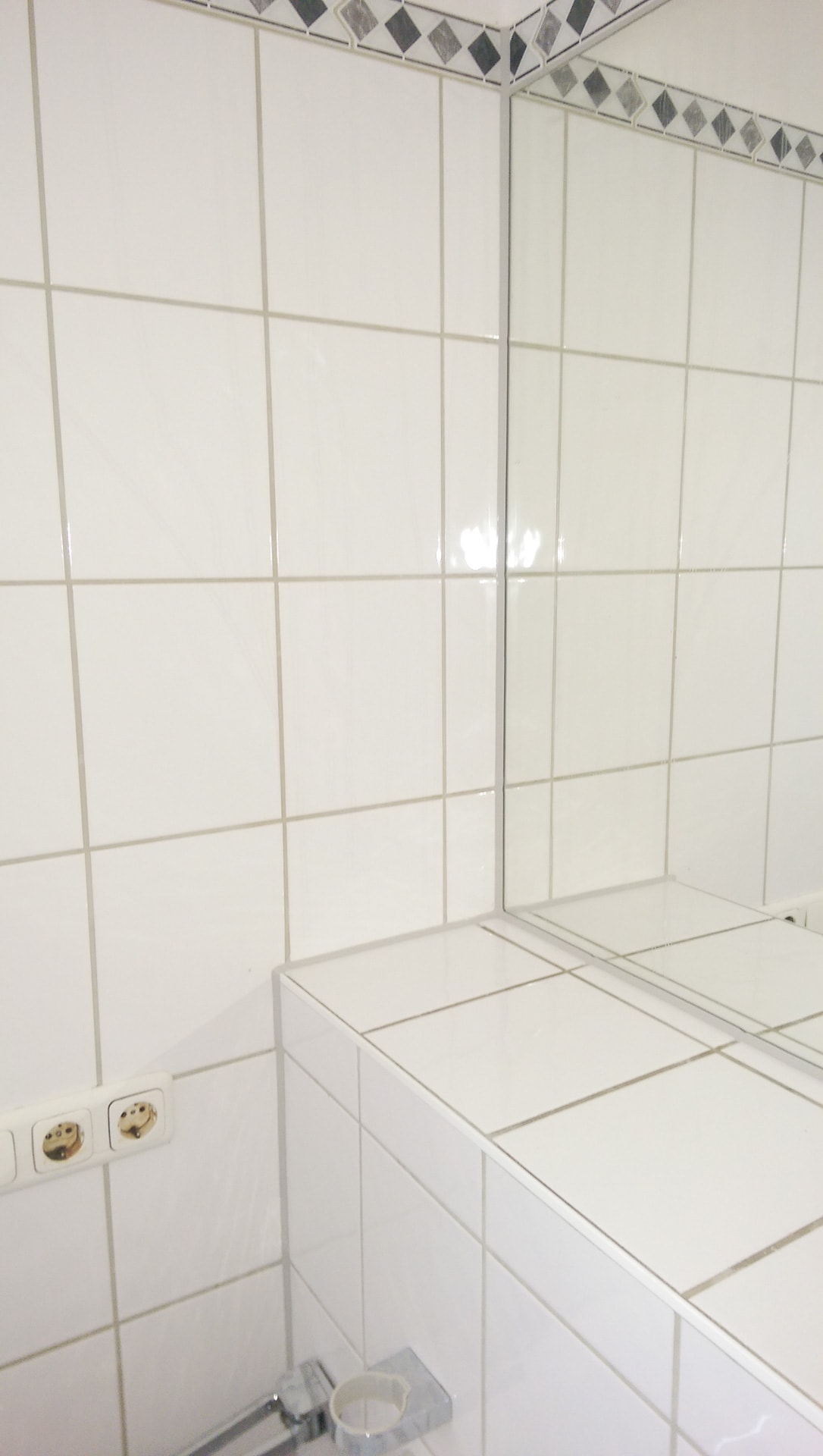 In diesem Bad wurden die Silikonfugen durch langjährige Einwirkung von Nikotin gelblich verfärbt. In wenigen Arbeitsschritten konnten wir die alten Fugen entfernen und erneuern. Jetzt wirkt das Bad wieder wie neu.