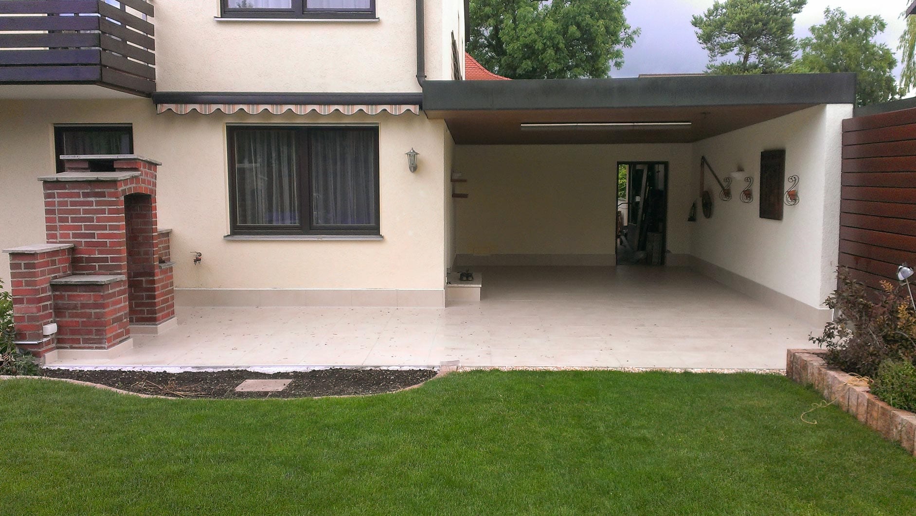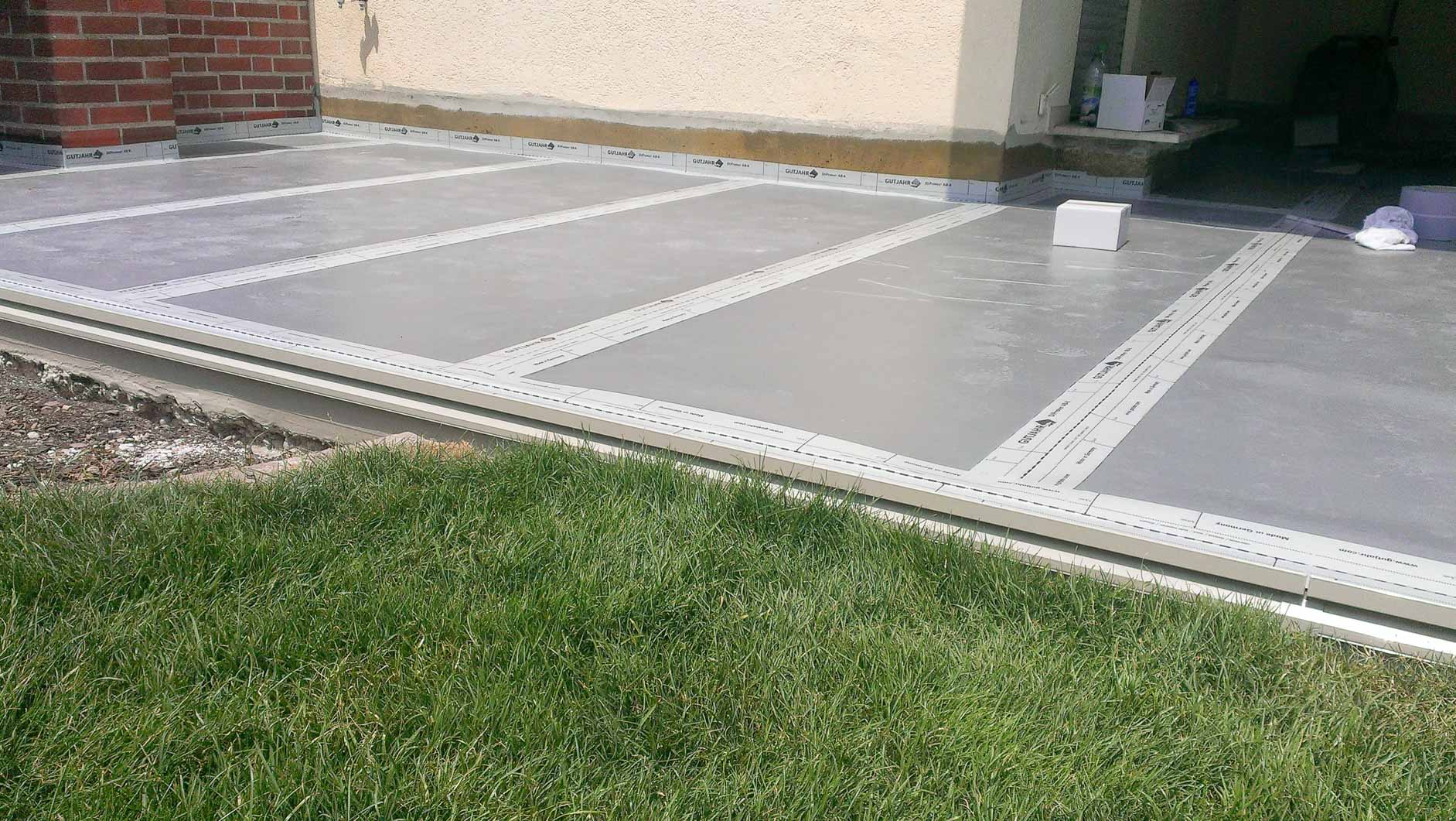 Diese Terrasse war einfach in die Jahre gekommen und hatte dringend Zuneigung nötig. Der Naturstein- und Estrichbelag wurde komplett entfernt um Platz für Neues zu schaffen. Anschließen wurde ein neuer Gefälleestrich aufgebracht, worauf eine schwimmende Abdichtung der Frima Gutjahr folgte. Die finalen Fliesenarbeiten wurden mit dem TERRACHAMP System ausfeführt. Wir von Bautenschutz Schatzki haben um alles gekümmert und sind der Meinung, das Ergebnis kann sich sehen lassen.